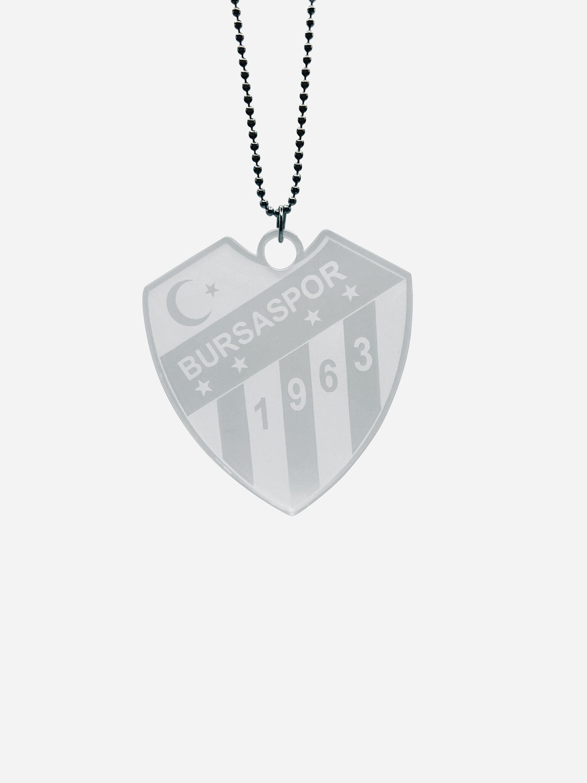 Das Bursaspor-Logo erscheint in einem transparent-grauen Stil, wodurch es je nach Lichteinfall edel schimmert und besonders stilvoll und dezent wirkt – perfekt für Fans, die Wert auf Qualität und Eleganz legen.