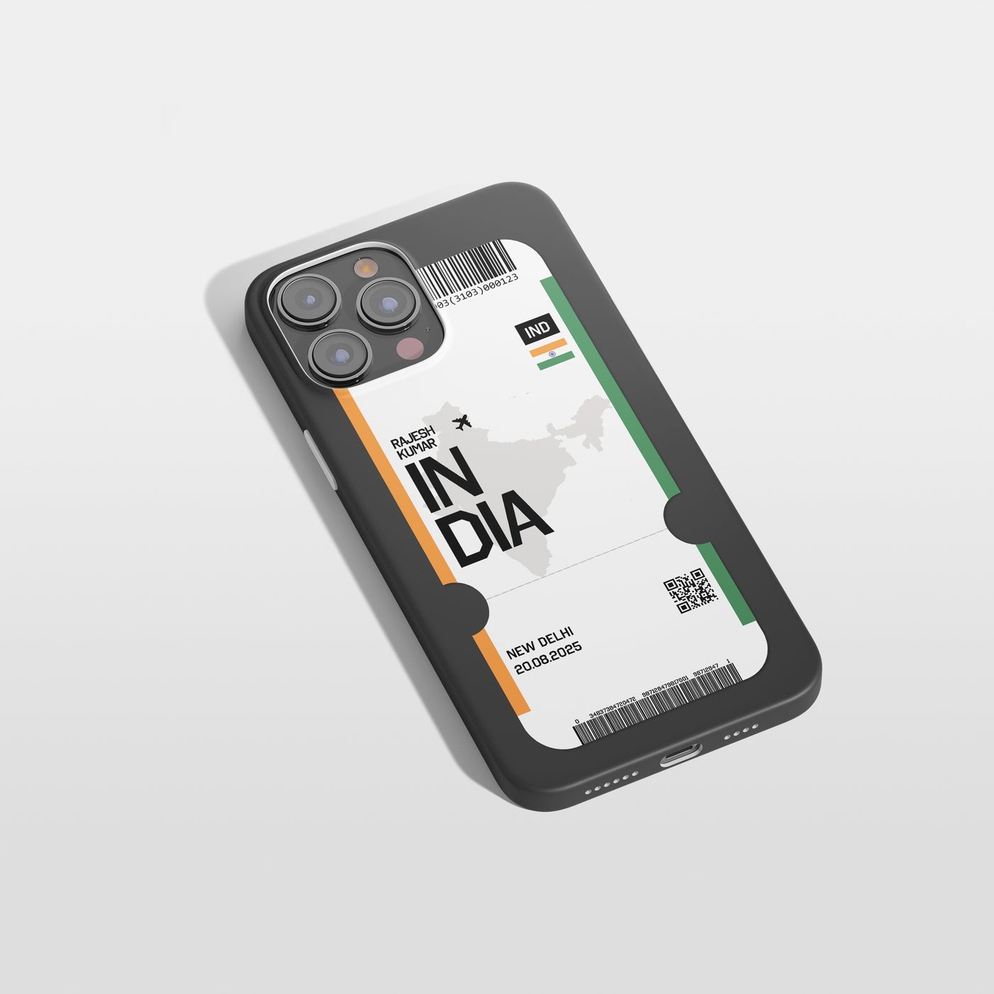 Ob Neu-Delhi, Mumbai, Goa oder Jaipur – mit der Flugticket Handyhülle Indien trägst du dein persönliches Boarding-Ticket immer bei dir. Das stilvolle Boardingpass Design erinnert dich an deine schönsten Reisen nach Indien und macht dein Smartphone zu einem echten Highlight. Für alle, die Reiselust, Abenteuer und modernes Design lieben.