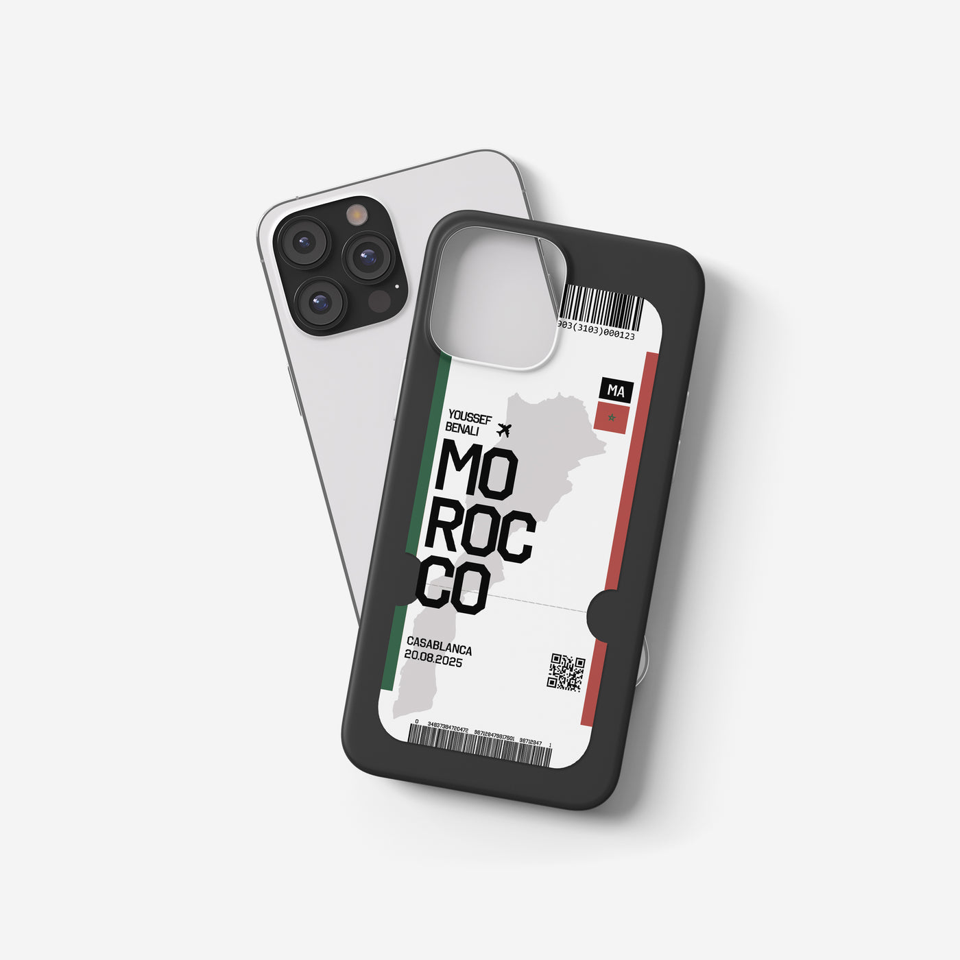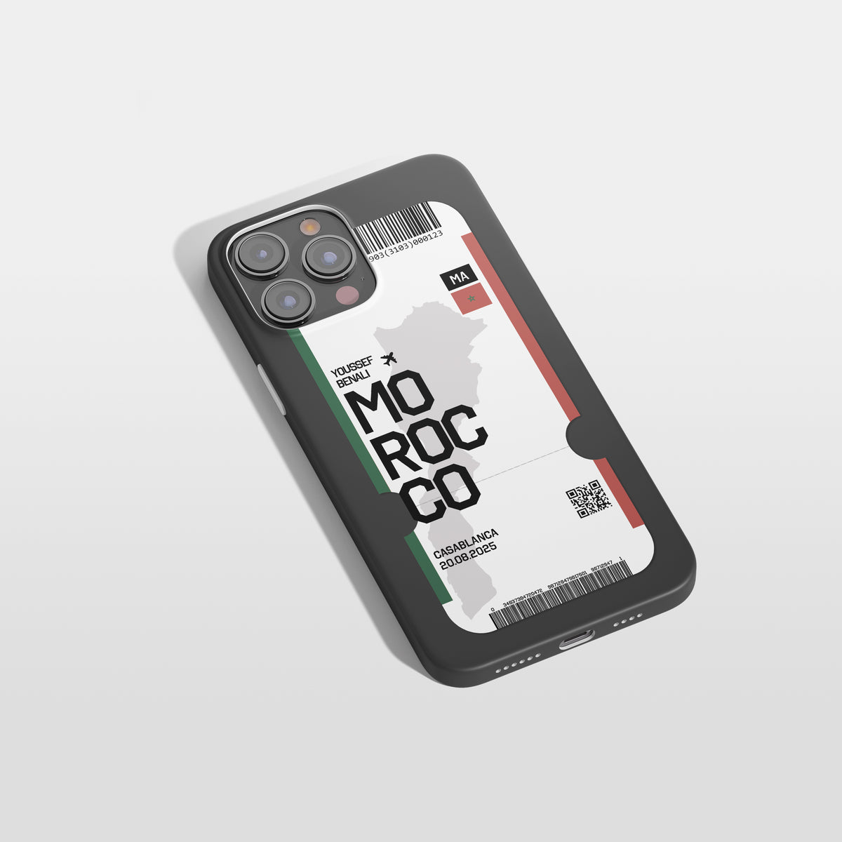 Ob Marrakesch, Casablanca, Rabat oder Fès – mit der Flugticket Handyhülle Marokko trägst du dein persönliches Boarding-Ticket immer bei dir. Das elegante Boardingpass Design vereint Reiselust, Abenteuer und Lifestyle und macht dein Smartphone zu einem echten Eyecatcher. Perfekt für alle, die Marokko, Reisen und außergewöhnliches Design lieben.