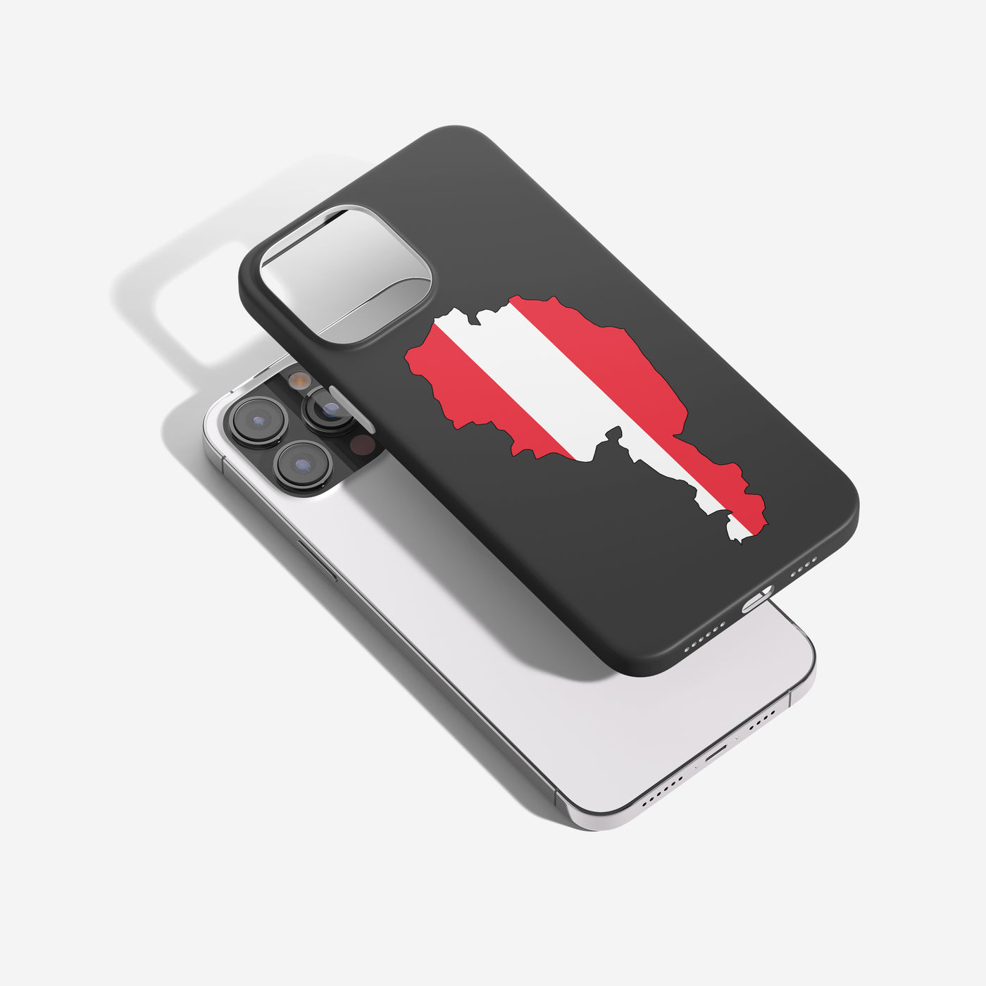 Österreich Handyhülle mit Länderkarte & Nationalwappen – personalisierbar, stilvoll